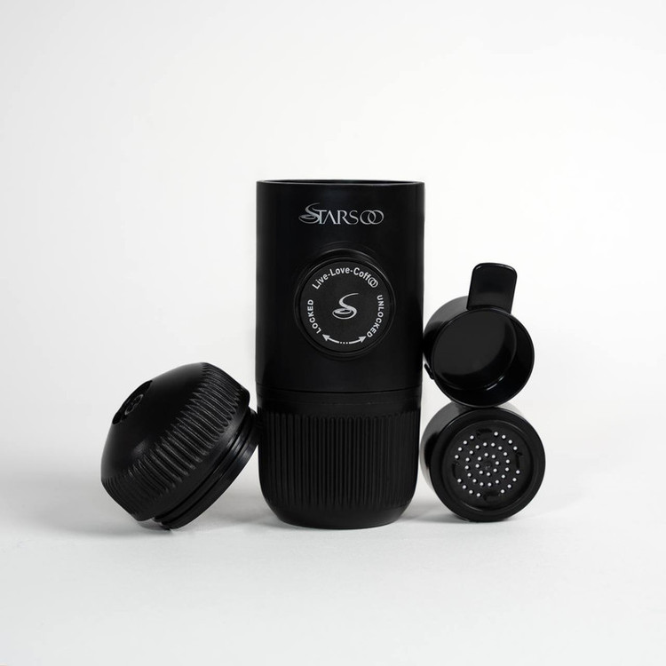 دستگاه مینی اسپرسو ساز قهوه با برند استارسو که برای تهیه قهوه به صورت اسپرسو ساخته شده است از ویژگی های این محصول کوچک بودن ، حمل راحت ، کیفیت عصاره گیری بالا را دارد با قهوه ساز استارسو شما می توانید در هر مکان و در هر زمان قهوه خود را بنوشید در راه بدون قهوه نمانید